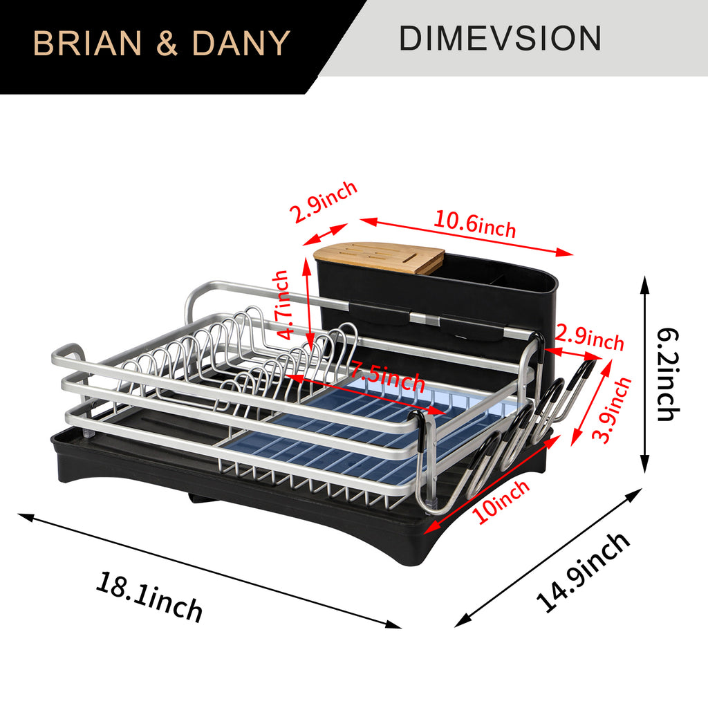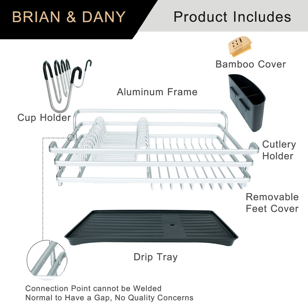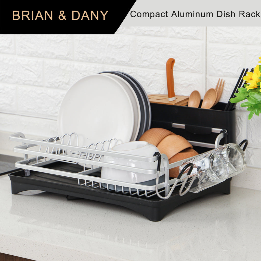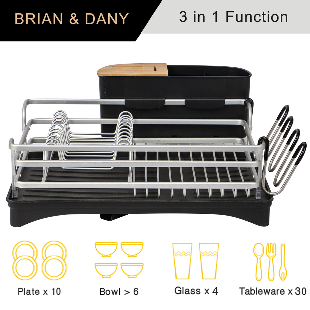 Keep countertops dry and organized with BRIAN & DANY dish drying rack.Made of aluminum frame which is never rust and lighter than stainless steel dish rack.This dish rack has large capacity that can accommodate plates,